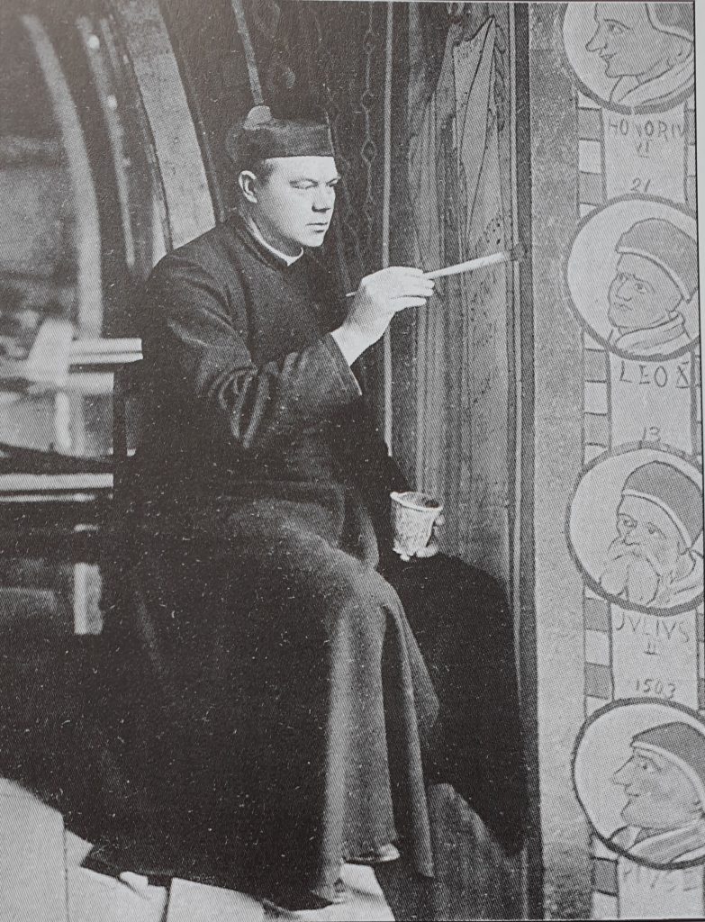 Auffallend viele Bildmotive aus der Welt der Musik hat er in die Gemälde der Eschfelder Kirche eingefügt. Dies geschah nicht zufällig, war er doch überdies ein ausübender Musiker mit Talent und vielseitigen musikalischen Aktivitäten.